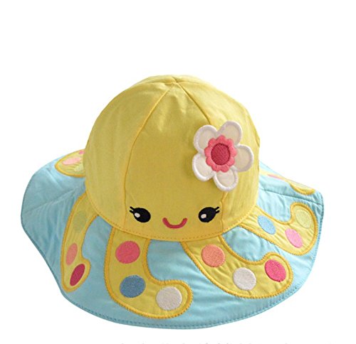 (よキーよ)Yokeeyoベビー用ハット つば広帽子 お洒落 赤ちゃんキャップ 魚の模様 刺繍 リボン飾り 女の子 男の子 男女通用 紫外線 UVカット 日よけ止め 日焼け防止