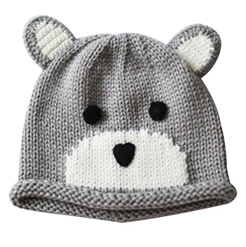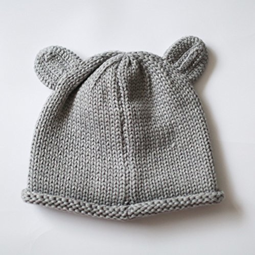 (よキーよ)Yokeeyo ニット帽 手編品 可愛い おクマさん 熊耳 毛糸 ニットキャップ ベビー用ハット 子供 赤ちゃん キッズ 帽子 秋冬 防寒 グレー 男の子 男女児 女の子