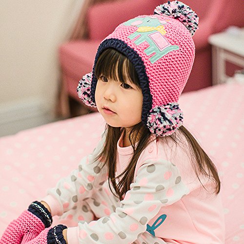 (よキーよ)Yokeeyo ニット帽 手袋 ボンボン付 耳付きタイプ レッグウォーマーのセット 可愛い 毛糸 刺繍 動物のプリント 星柄 手袋 ニットキャップ ベビー用ハット 赤ちゃん 子供 キッズ 女の子 秋冬 防寒 スタイリッシュ オシャレ