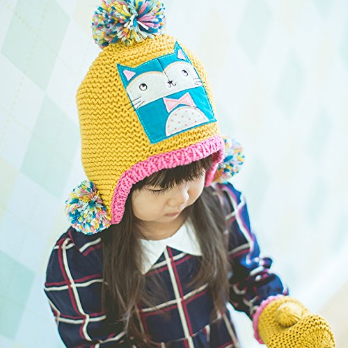 (よキーよ)Yokeeyo ニット帽 手袋 ボンボン付 耳付きタイプ レッグウォーマーのセット 可愛い 毛糸 刺繍 動物のプリント 星柄 手袋 ニットキャップ ベビー用ハット 赤ちゃん 子供 キッズ 女の子 秋冬 防寒 スタイリッシュ オシャレ