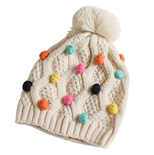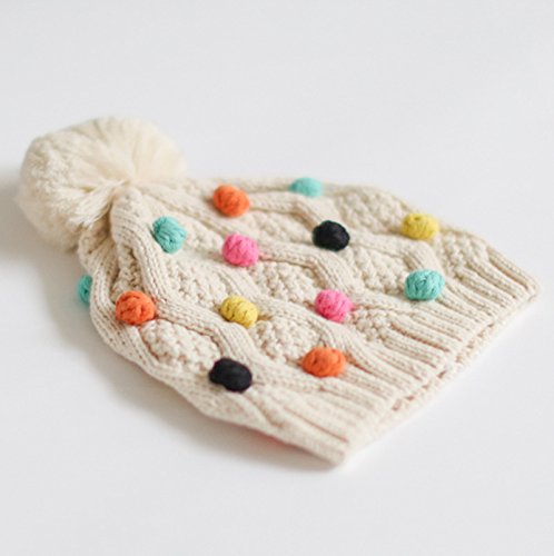 (よキーよ)Yokeeyo ニット帽 毛糸 ニットキャップ 親子お揃い帽 ベビー用ハット 子供 赤ちゃん キッズ 帽子 女の子 男女児 秋冬 防寒 暖かい 可愛い マルチ毛玉付きニット帽 てづく編み コットン