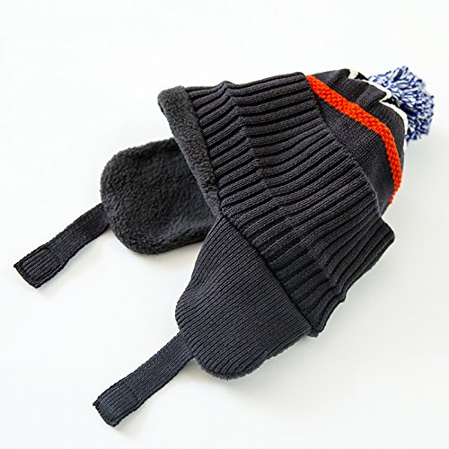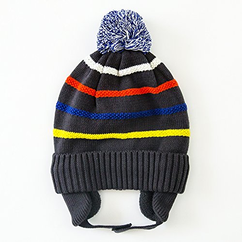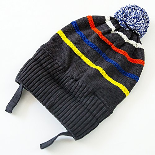(よキーよ)Yokeeyo ニット帽 ボンボン付 可愛い 毛糸 マルチカラーの縞模様 ニットキャップ ベビー用ハット 子供 赤ちゃん キッズ 帽子 男の子 男女児 秋冬 防寒 耳付きタイプ 黒い 耳あて 暖かい