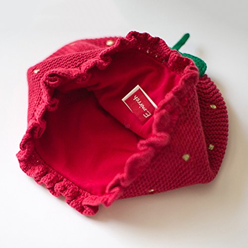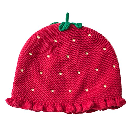 (よキーよ)Yokeeyo ニット帽 可愛い いちご柄 毛糸 苺プリント レース ラメ 刺繍 ニットキャップ ベビー用ハット 新生児 子供 赤ちゃん キッズ 帽子 女の子 秋冬 防寒 綿