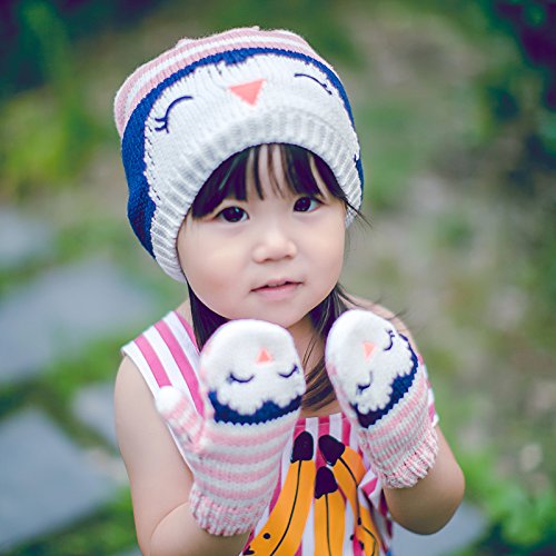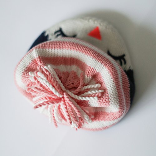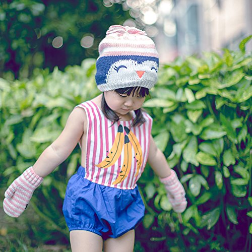(よキーよ)Yokeeyo ニット帽 可愛いボンボン付き帽子 毛糸 ニットキャップ ベビー用ハット 赤ちゃん 大人キャップ キッズ 女の子 秋冬 防寒 刺繍 スタイリッシュ 縞模様 ミミズク柄