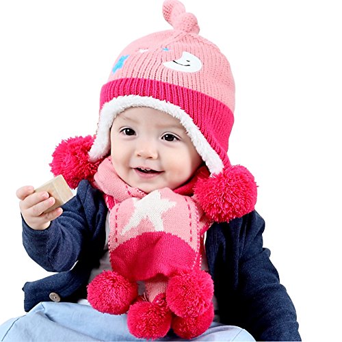 (よキーよ)Yokeeyo 耳あてニット帽 マフラー レッグウォーマーのセット 可愛い耳付き帽子 毛糸 ボンボン付き ニットキャップ ベビー用ハット 赤ちゃん 子供 秋冬 防寒 スタイリッシュ 2点セット 首まですっぽり覆われる