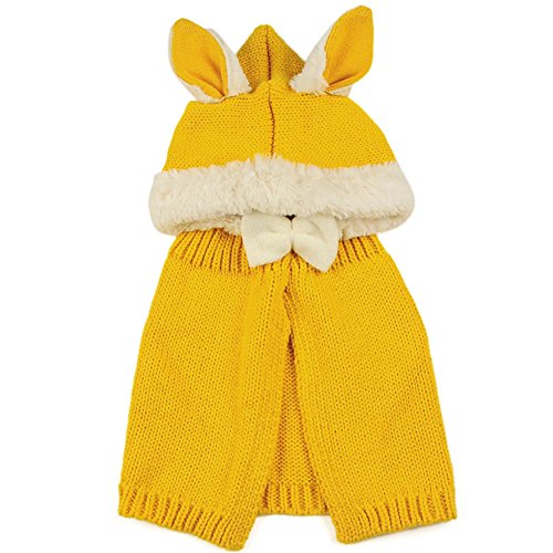 (よキーよ)Yokeeyo ニット帽子&マフラーのセット 耳&肩まであたたか 毛糸 可愛い5D兎の耳付き帽子 ケープ ベビー キッズ 赤ちゃん ふわふわ 男の子 女の子 キュート 防寒 スタイリッシュ リボン付き 男女児 秋冬 防寒