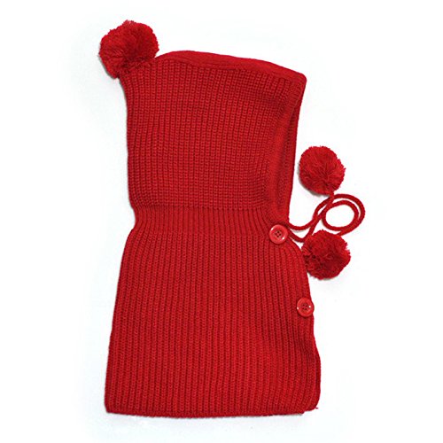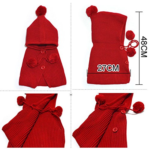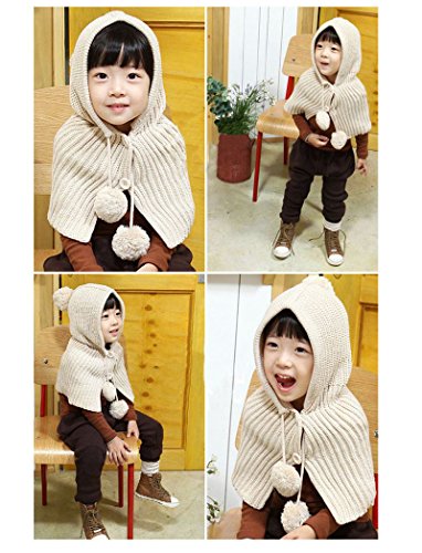(よキーよ) Yokeeyo ニット帽子&マフラーのセット 耳&肩まであたたか 毛糸 可愛い耳付き帽子 ケープ ベビー キッズ 赤ちゃん ふわふわ 男の子 女の子 キュート 防寒 スタイリッシュ ボンボン付き 男女児 秋冬 防寒