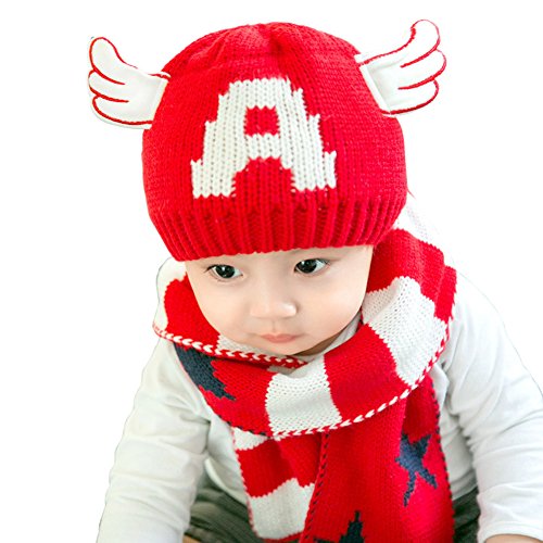 (よキーよ)Yokeeyo ニット帽子とマフラーのセット 3Dエンジン耳付き帽子 耳まであたたかキャップ 赤ずきんちゃん風マフラー ニットキャップ 可愛い耳 ベビー用ハット 赤ちゃん キッズ 男の子 女の子 男女児 秋冬 防寒 星柄