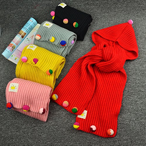 (よキーよ)Yokeeyo ニット帽子 マフラー ケープ 一体型 フード ポンチョ 襟巻 肩まであたたかキャップ 赤ずきんちゃん風マフラー ニットキャップ マルチ毛玉付き 可愛いとんがりハット秋冬 防寒