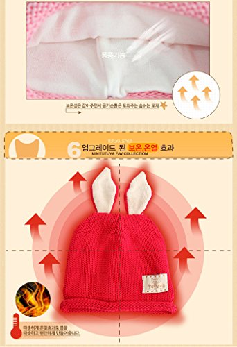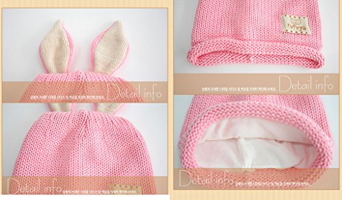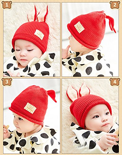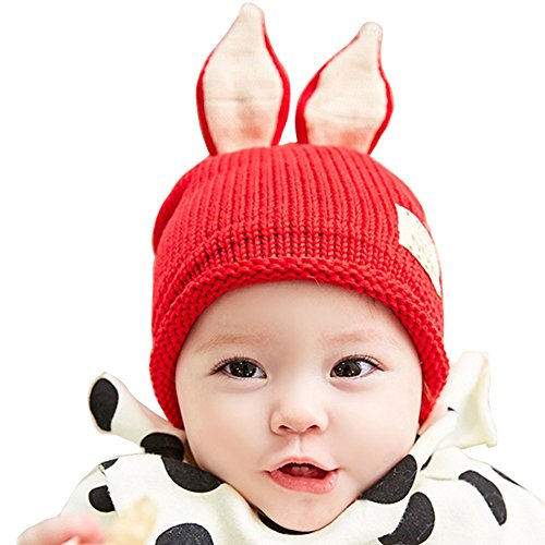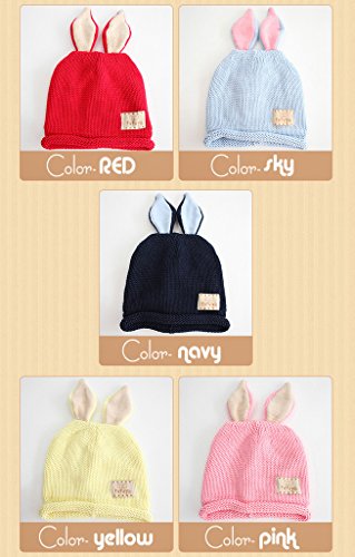 (よキーよ)Yokeeyo 可愛い子供ニット帽子 3Dウサギ耳付き 耳まであたたかキャップ 毛糸 赤ずきんちゃん風ハット ニットキャップ 赤ちゃん キッズ 男の子 女の子 男女児 秋冬 防寒 タグ付き