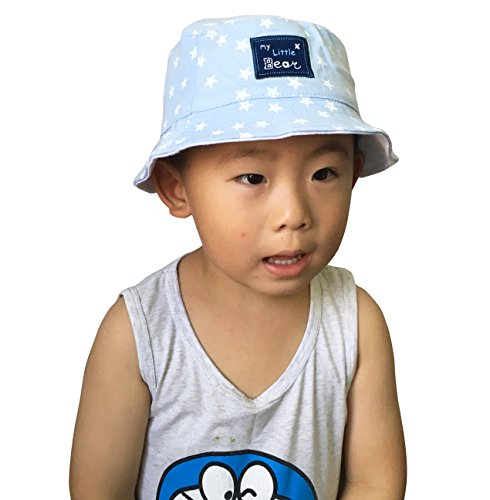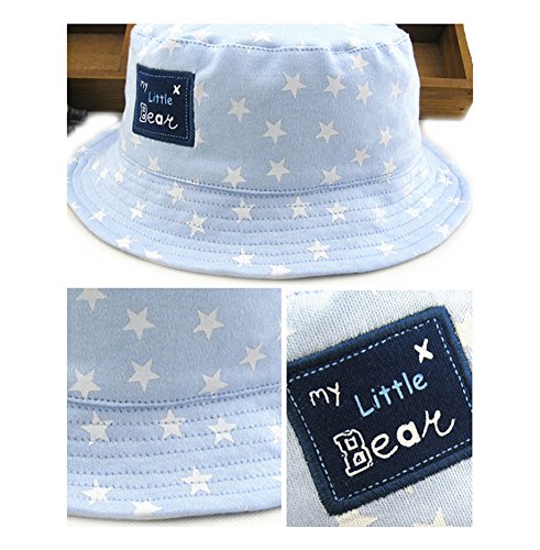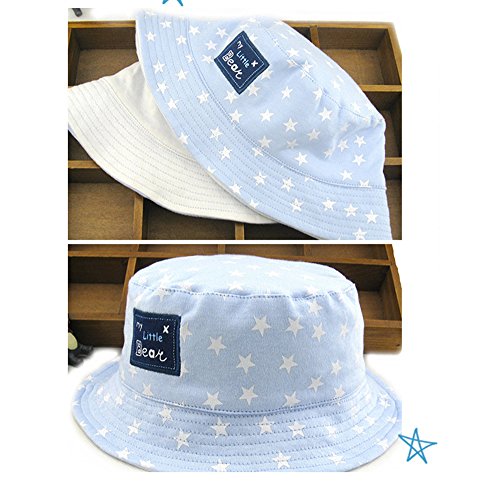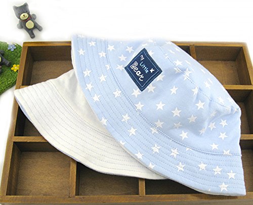 (よキーよ)Yokeeyo ベビー用ハットリバーシブル つば広 赤ちゃん キッズ キャップ サファリハット 帽子 子供サンバイザー フィッシャーマンハットドット 星柄 女の子 男の子 男女児 紫外線 UVカット 日よけ 日焼け止め (ライトブルー+ホワイト 6-12ヶ月)