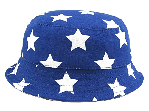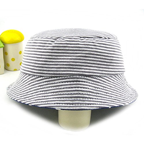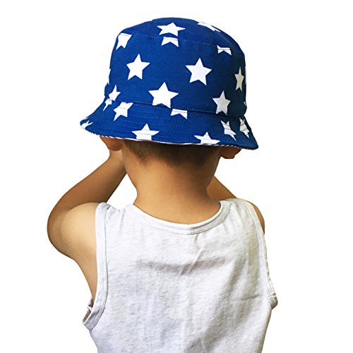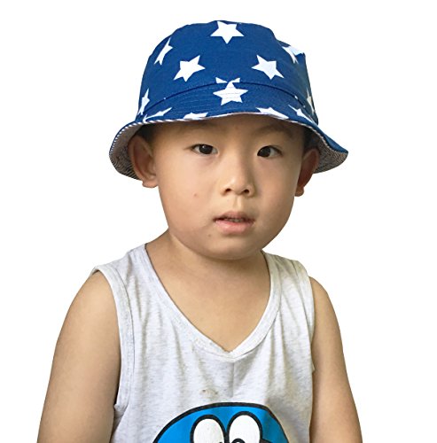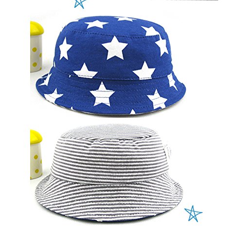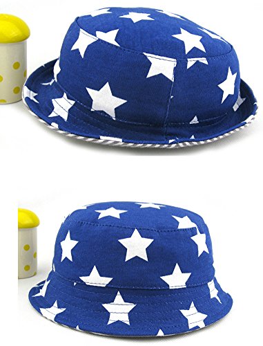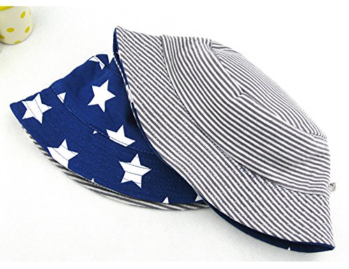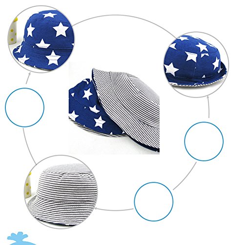 (よキーよ)Yokeeyo ベビー用ハットリバーシブル つば広 赤ちゃん キッズ キャップ サファリハット 帽子 子供サンバイザー フィッシャーマンハットドット ストライプ 星柄 女の子 男の子 男女児 紫外線 UVカット 日よけ 日焼け止め (ブルー+グレーストライプ 12-18ヶ月)