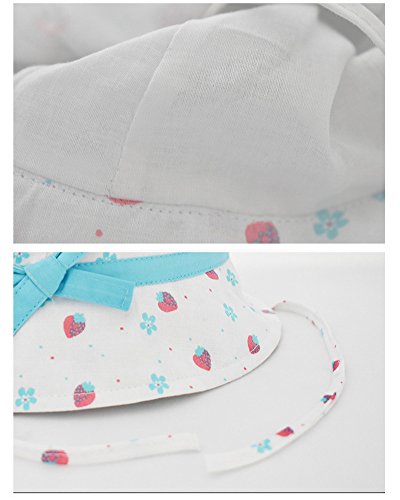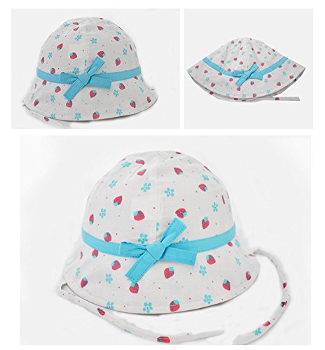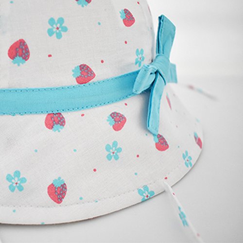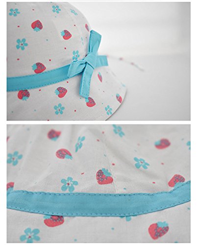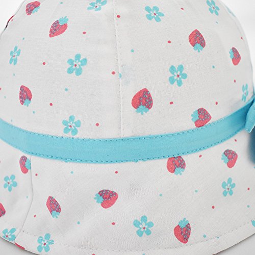 (よキーよ)Yokeeyo ベビー用ハット つば広 赤ちゃん キャップ サファリハット キッズ 帽子 子供サンバイザー フィッシャーマンハット 紐付き苺柄 ホワイト かわいいリボン飾り 女の子 男の子 男女児 紫外線 UVカット 日よけ 日焼け止め