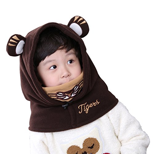 (よキーよ)Yokeeyo 耳あてニット帽 マフラー レッグウォーマー ネックカバー 可愛い耳付き帽子 毛糸 ニットキャップ ベビー用ハット 赤ちゃん 子供 秋冬 防寒対策 スタイリッシュ 首まですっぽり覆われる 仮装 (L, コーヒ色)
