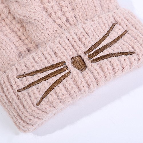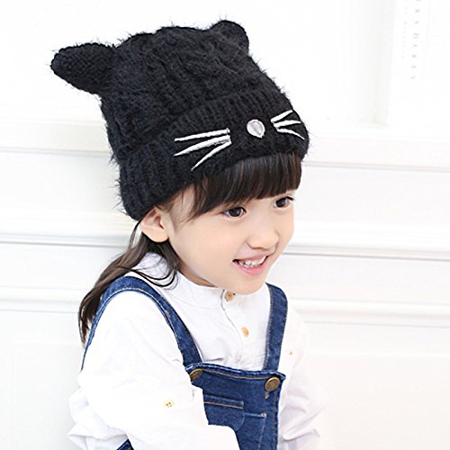 (よキーよ)Yokeeyo ニット帽 毛糸 厚手 裏起毛 かわいい耳付き帽子 ねこ耳 赤ちゃん キッズ 帽子 男の子 女の子 男女児 秋冬 防寒 刺繍 スタイリッシュ ふわふわ