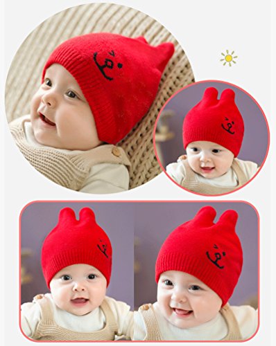 (よキーよ)Yokeeyo ニット帽 毛糸 可愛い兎の耳付き ウサギ耳 新生児帽子 ベビー用帽 赤ちゃん キッズ 帽子 男の子 女の子 男女児 秋冬 防寒 刺繍 スタイリッシュ とんがり