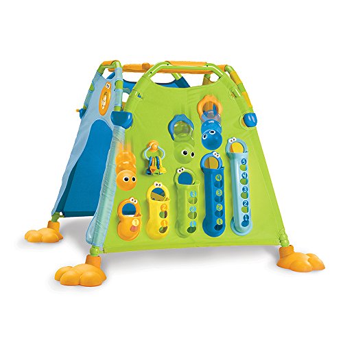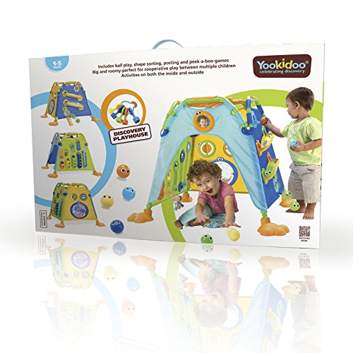 ●【商品説明】●「Yookidoo(ユーキッド) プレイテント」は、しっかり強固なパイプと大きなスタンドに支えられた四角のテント型遊具です。●天井は丸穴あき。●通気のよい設計なので、こもらず内側からの声も聞こえやすく安心です。●ボタンひとつのロックの解除で簡単に屏風状に折りたためます。●4面は違ったデザインを持ちます。●凝った仕掛けは知的発達を促します。●また、内外両側から同時に遊べてコミュニケーション力を育みます。●【使用方法】●A面:放り込んだボールは螺旋通路を通って転がり出ます。●螺旋通路は外側2本、内側3本。●5個のボールで競いあえます。●B面:クルクル回して遊ぶ羽根車2個と、いないないバー遊びができるビーズ入り透明ディスクがついています。●回すと心地よいサウンドが。●C面表:5個のボールを色合わせをしながら入れたり、バスケットの長さに合わせて入れたり。●数・量・数字で数の原理が学べます。●C面裏:穴から入れたボールが出ないようにフタを閉めることができます。●フタはカギで開け閉め。●ホルダーにまとめられたカギの形は5種類。●鍵は鍵かけフック...