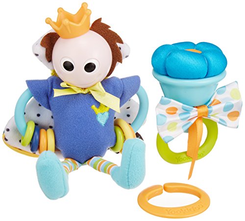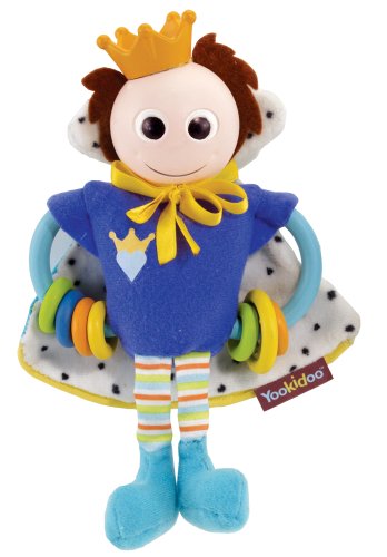 シンプルで親しみやすい顔が赤ちゃんの初めての友達を作ります! 小さく力の弱い赤ちゃんでも握りやすい綿入れの胴体、振ればビーズ音が鳴る頭、噛みごたえのあるクラウン、シャカシャカ音のマント、カラフルでサイズが異なるアクセサリーをはめたおしゃぶりアーム。