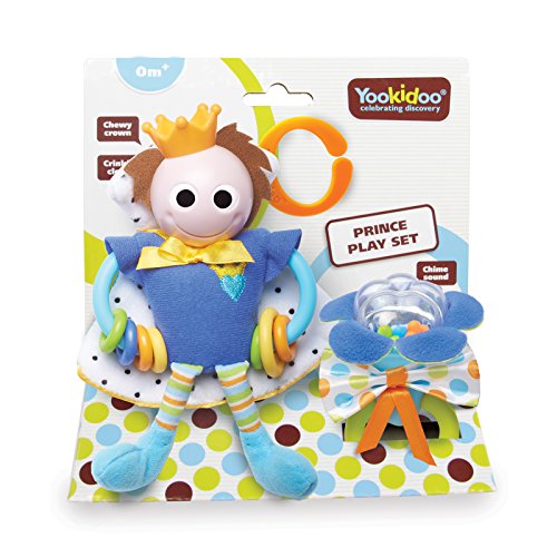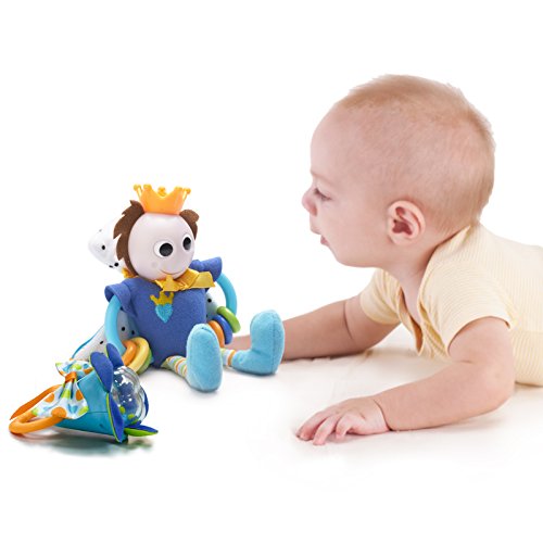 - crinklyクロークが適用されたフィギュア王子、スライドビーズ、触覚と視覚的な刺激を提供するラトル。