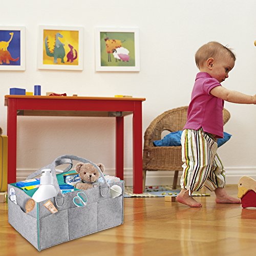 Yosoo おむつ ストッカー オムツ 収納ケース 折りたたみ 収納 ボックス ベビー用品 収納バッグ おもちゃ 小物入れ おむつ保育園収納ボックス 車載旅行用収納バック ブールフェルトバスケット 大容量ベビー用品収納バッグ 哺乳瓶 ミルク 衣類 鍵 おむつなど 手提げバック