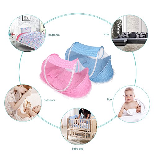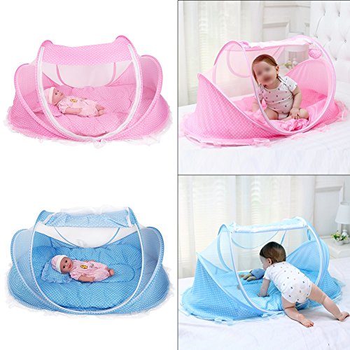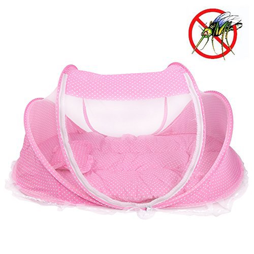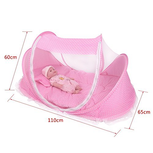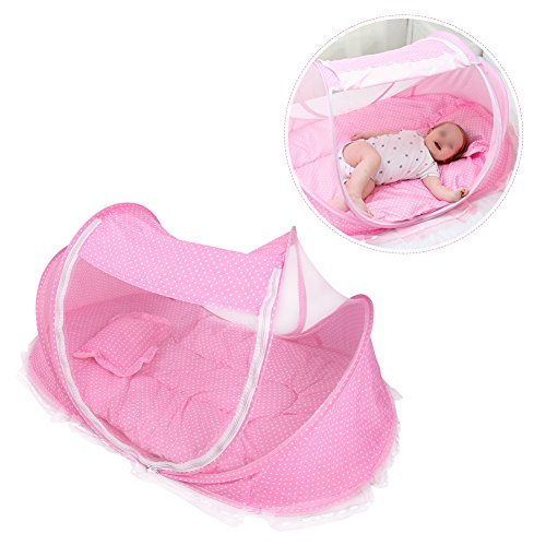 折りたたみ式ベビー乳児ポップアップCrib Cradle anti-bugテントMosquito Net withマットレス枕ポータブルNurseryベッドベビーベッドキャノピー旅行ビーチ公園再生Shades ピンク Yosoo