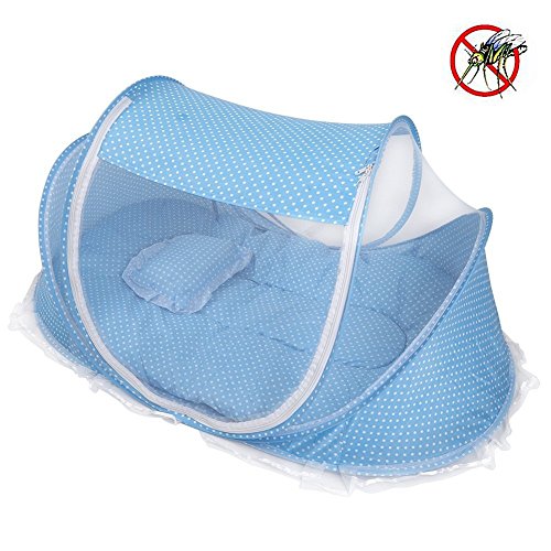 折りたたみ式ベビー乳児ポップアップCrib Cradle anti-bugテントMosquito Net withマットレス枕ポータブルNurseryベッドベビーベッドキャノピー旅行ビーチ公園再生Shades ブルー Yosoo