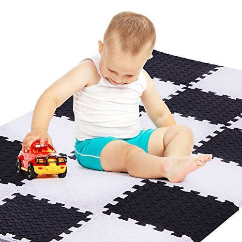 - 【転倒防止で安全】EVA樹脂を原材料としてのマットの厚さが10mmあります。通常タイプよりもクッション性、防音性が更にパワーアップしております。適当な弾力性により、お子様が転んだときも衝撃を和らげてくれるフロアーマットで、9枚組の30×30×1cmのマットは広い安全な場所を子供に作り、お子様を安心に遊ばせる事ができます。