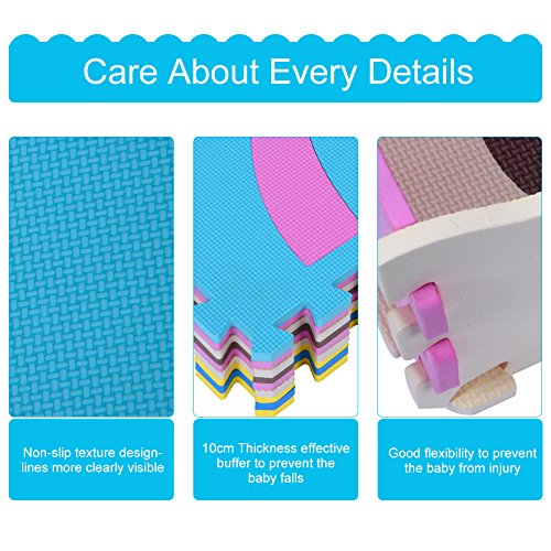 - 【転倒防止で安全】EVA樹脂を原材料としてのマットの厚さが10mmあります。通常タイプよりもクッション性、防音性が更にパワーアップしております。適当な弾力性により、お子様が転んだときも衝撃を和らげてくれるフロアーマットで、9枚組の30×30×1cmのマットは広い安全な場所を子供に作り、お子様を安心に遊ばせる事ができます。ご注意:色がランダムです。