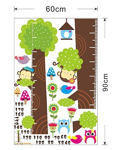 - 高さ測定の成長グラフと木かわいいモンキーとふくろうウォールVinlyデコレーション装飾ステッカーの女の子、男の子の子供の寝室、保育園、プレイルーム、のウォールステッカー、部屋のスーパーのアートウィンドウステッカー
