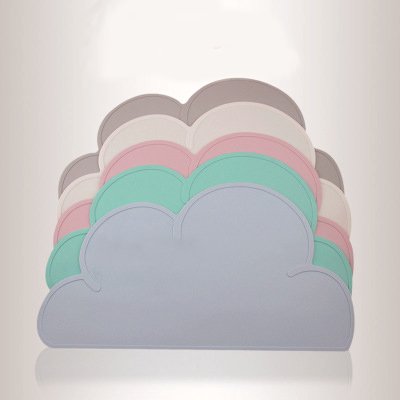 【You Mii】ベビーお食事ランチョンマット シリコーン 可愛い雲 小型 ディナー ポータブル テーブルマット 防水性 (ホワイト)