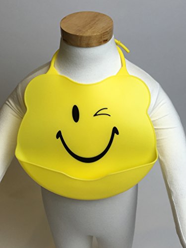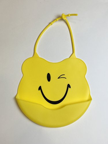 【You Mii】スマイル シリコンビブ 6ヶ月~3歳 お食事エプロン スタイ よだれかけ ポケット付き (イエロー)