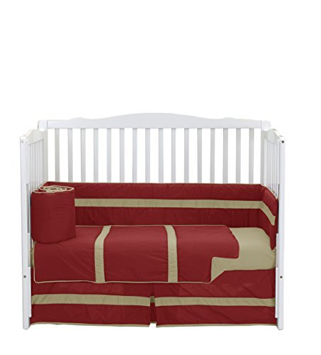 Baby DollBedding Solid Stripe Crib 4 Piece Bedding Set Red/Yellow [並行輸入品]