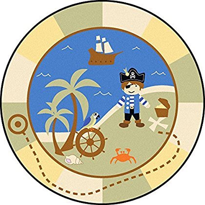 Joy Carpets Kid Essentials Active Play & Juvenile Round Lil' Pirate Rug Multicolored 5'4 [並行輸入品]