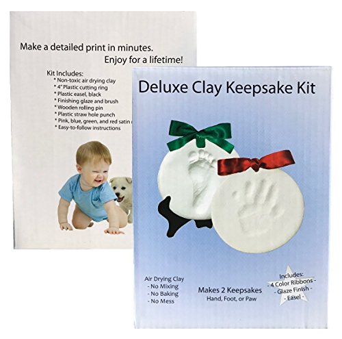 DELUXE Clay Hand Print & Footprint Keepsake Kit - Dries Stone Hard - No Bake - Air Drying (Makes 2 Plaques) [並行輸入品]