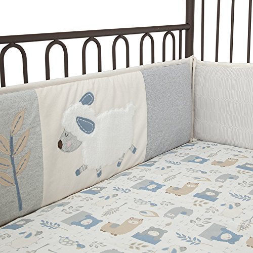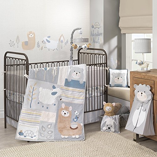 Lambs & Ivy Happi By Dena Little Llama Sheep/Bear 4 Piece Crib Bumper Grey/Blue [並行輸入品]