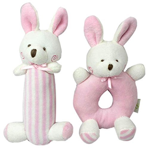 Amazleer Soft Baby Rattle Plush Sensory Activity Toy Grasping Ring Bell Rattles Baby Girl Gifts Baby Boy Hand Grasp Toys (Pink Bunny) [並行輸入品]