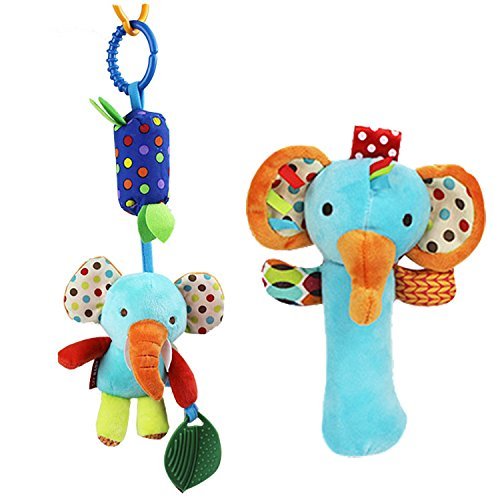 SKK Baby Soft Hand Rattle + Clip on Wind Chime Teether Toy Gift For Newborn to Kids Elephant On Sale [並行輸入品]