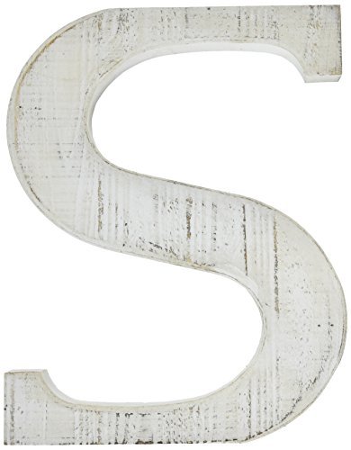 Adeco Wooden Hanging Wall Letters S - White Decorative Wall Letter of Living Room Baby Name and Bedroom Decor Whitewash [並行輸入品]