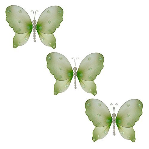 The Butterfly Grove Isabella Butterfly Decoration - small 5x4 green Hanging nylon decor for wall and ceiling nursery room girl?s bedroom wedding birthday party craft - set of 3 [並行輸入品]