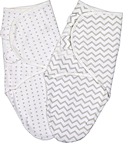 Ely's & Co Swaddle Blanket Adjustable Infant Baby Wrap Set 2 Pack (0-3 Months Grey Chevron and Polka Dots) [並行輸入品]