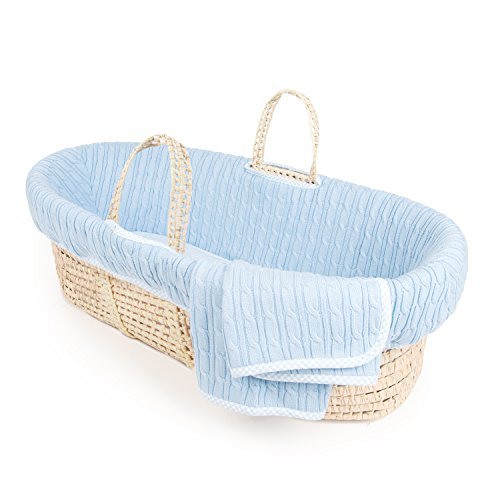 Tadpoles Cable Knit Moses Basket and Bedding Set Blue [並行輸入品]