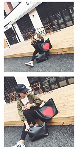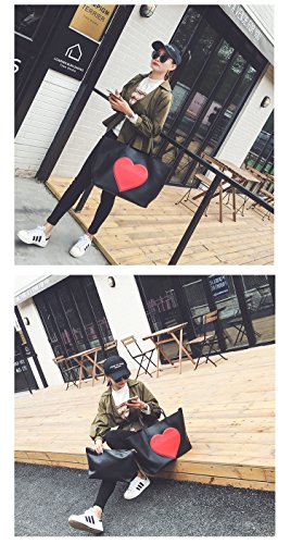 Youchan(ヨウチャン) ポーチ付き ハート キャンパス トートバッグ 大きめ A4 バッグインバッグ マザーズバッグ おしゃれ かわいい 軽い 軽量 大容量 肩掛け 個性的 2WAY 手提げ バッグ カバン 通勤 旅行