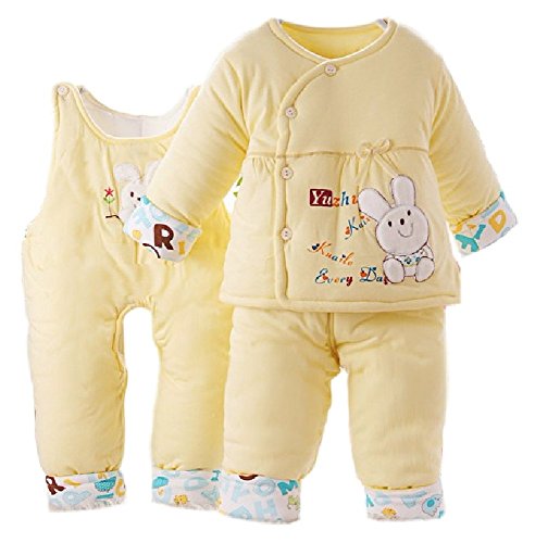 Youchan(ヨウチャン)赤ちゃん 新生児 キッズ 子供服 お洋服 上下2点セット ジャケット パンツ 出産祝い かわいい うさぎちゃん お出かけ 防寒 暖か 秋 冬 (80cm, イエロー)