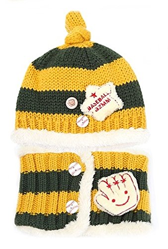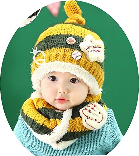 Youchan(ヨウチャン)新生児 赤ちゃん キッズ 子供用 女の子 男の子 ニット帽 マフラー セット あったか 防寒 秋 冬 (イエロー)