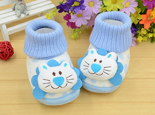 Youchan(ヨウチャン)新生児 赤ちゃん キッズ 女の子 ベビーシューズ ファーストシューズ 室内履き 子供靴 足首 暖か ライオンさん お出かけ 散歩 12cm 13cm 秋 冬 (12cm, ブルー)