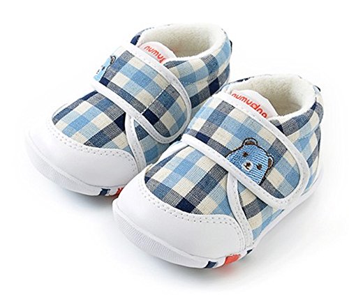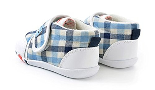 Youchan(ヨウチャン)赤ちゃん キッズ 女の子 男の子 ベビーシューズ ファーストシューズ 子供靴 マジックテープ チェック柄 お出かけ 散歩 13cm 14cm 春 秋 冬 (13cm, ブルー)