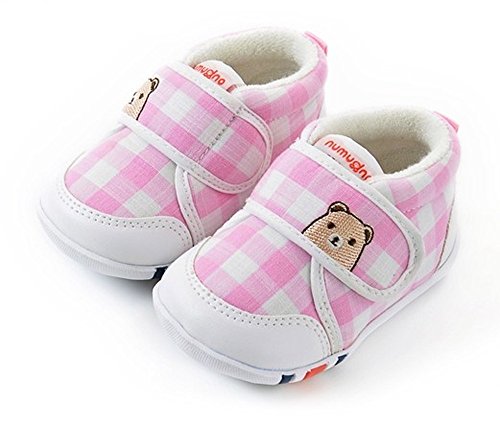 Youchan(ヨウチャン)赤ちゃん キッズ 女の子 男の子 ベビーシューズ ファーストシューズ 子供靴 マジックテープ チェック柄 お出かけ 散歩 13cm 14cm 春 秋 冬 (14cm, ピンク)