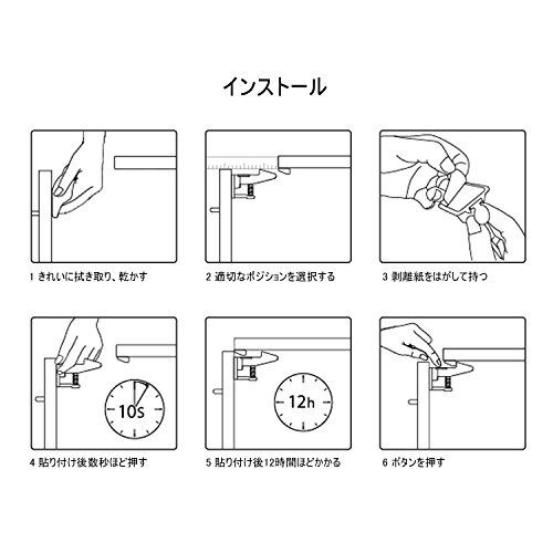 - 操作簡単:スプリング式なのでツールやネジ不要、家具の外観に損傷しないです。お好みの場所に、、同梱の強力3M粘着テープで貼り付けます。