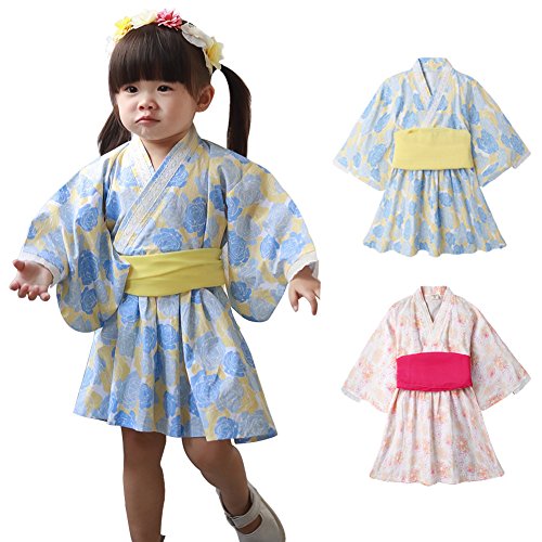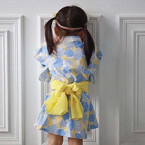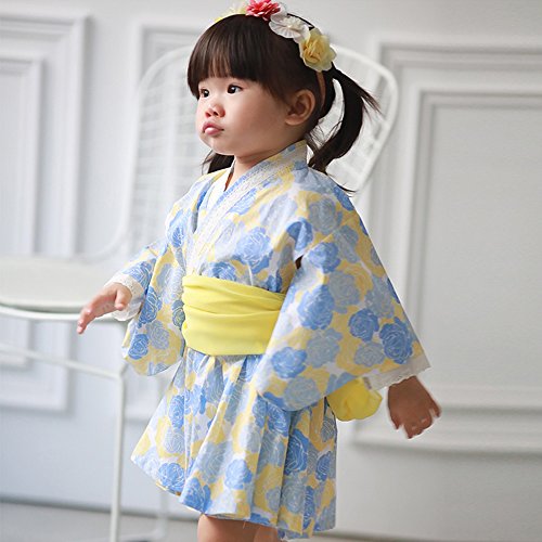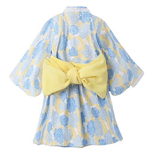 Yoyoshop 女の子 ベビー用 着物 和装 花柄 浴衣ドレス 甚平 七五三 お宮参り お祝い着 正月 ひな祭り 衣裳 ブルー 90cm