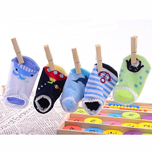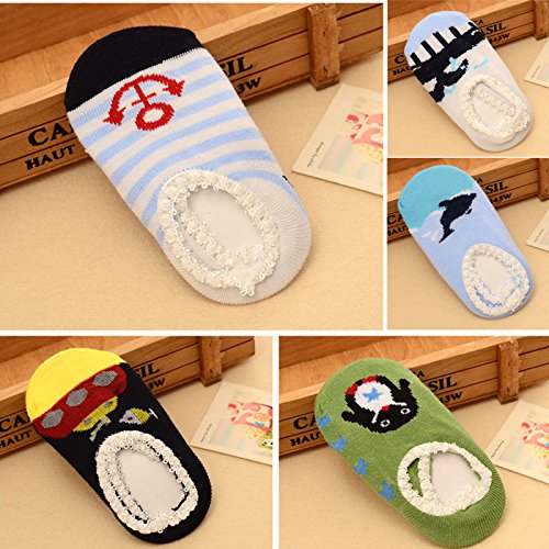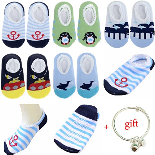 Fly-love? 5 Pairs Cute Baby Toddler Stripes Anti Slip Skid Socks No-Show Crew Boat Sock For 6-18 month by Fly-Love